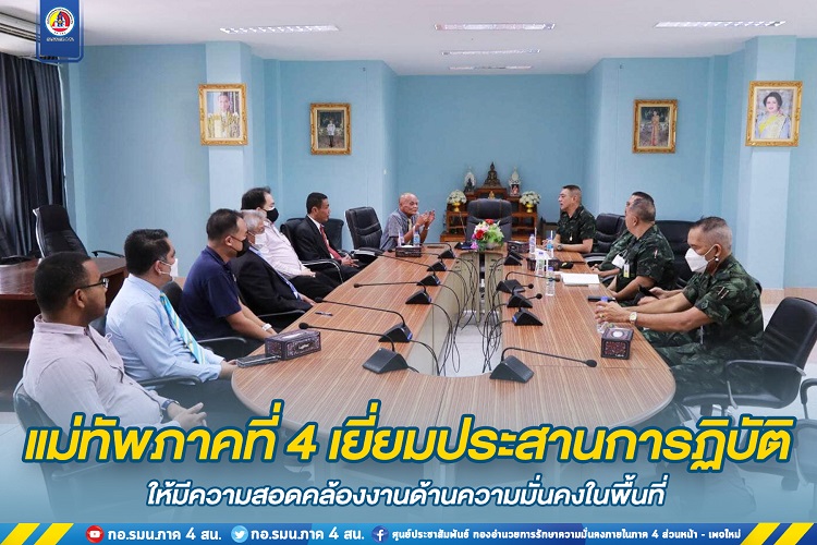 เมื่อ (6 ม.ค.66) เวลา 14.00 น. ที่ สำนักงานอัยการจังหวัดนราธิวาส อำเภอเมือง จังหวัดนราธิวาส พลโท ศานติ ศกุนตนาค แม่ทัพภาคที่ 4/ผู้อำนวยการรักษาความมั่นคงภายในภาค 4 พร้อมด้วย คณะที่ปรึกษา ฝ่ายอำนวยการของกองอำนวยการรักษาความมั่นคงภายในภาค4ส่วนหน้า เข้าเยี่ยมคำนับ นายโสภณ ทิพย์บำรุง อดีตอธิบดีอัยการภาค 9 ปัจจุบันดำรงตำแหน่งที่ปรึกษาอัยการจังหวัดนราธิวาส และแนะนำตัวคณะทำงานของกองอำนวยการรักษาความมั่นคงภายในภาค 4 ส่วนหน้า เพื่อการประสานการปฏิบัติให้มีความประสานสอดคล้อง สร้างความร่วมมือ เพิ่มพูนความรู้ของแต่ละส่วนให้การปฏิบัติงานด้านความมั่นคงในพื้นที่เกิดความต่อเนื่อง เกิดความยุติธรรม และเกิดประสิทธิภาพสูงสุดต่อความมั่นคงปลอดภัยในชีวิตและทรัพย์สินของพี่น้องประชาชนโดยส่วนรวม เนื่องจากพื้นที่จังหวัดชายแดนภาคใต้มีลักษณะกฎหมายเฉพาะ รวมถึงมีข้อท้าทายในการปฏิบัติงานของเจ้าหน้าที่ที่แตกต่างจากลักษณะคดีอื่น การประสานความร่วมมือระหว่าง ศาล ทหาร ตำรวจ ฝ่ายปกครอง ผู้นำท้องที่ ท้องถิ่น ผู้นำศาสนา จะทำให้เกิดความคล่องตัวและเกิดประโยชน์สูงสุดต่อไป
