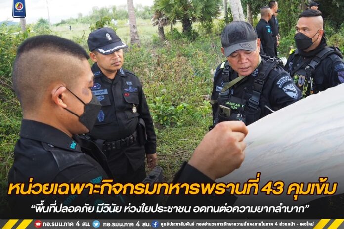 เมื่อวันที่ ( 4 มกราคม 2566 ) เวลา 15.00 น. พันเอก ปรเมธ ศานุพงศ์ ผู้บังคับหน่วยเฉพาะกิจกรมทหารพรานที่ 43 และคณะฯ ลงพื้นที่ตรวจเยี่ยม กำกับดูแล และให้กำลังใจแก่เจ้าหน้าที่ที่ปฏิบัติภารกิจ ในการดูแลความปลอดภัยให้กับพี่น้องประชาชน ห้วงเทศกาลปีใหม่ 2566 ของกำลังพลชุดปฏิบัติการเสริมสร้างความเข้าใจ และชุดคุ้มครองตำบล ในพื้นที่ อำเภอหนองจิก จังหวัดปัตตานี ประกอบด้วย ตรวจเยี่ยม ชุดปฏิบัติการพิทักษ์พื้นที่ กองร้อยทหารพรานที่ 4305 และ กองร้อยทหารพรานที่ 4303, ชุดคุ้มครองตำบลตุยง และชุดปฏิบัติการจักรยานยนต์เคลื่อนที่เร็ว