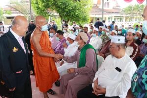 โดย พระเทพศีลวิสุทธิ์ เจ้าอาวาสวัดประชุมชลธารา พร้อมทั้ง พลตรี เฉลิมพร ขำเขียว ผู้บัญชาการกองพลทหารราบที่ 15 / ผู้อำนวยการศูนย์ประสานงานโครงการอันเนื่องมาจากพระราชดำริ ได้พบปะ และมอบร่มเป็นที่ระลึกแก่ผู้นำศาสนา และชาวไทยมุสลิมที่เดินทางมาร่วมงานในครั้งนี้ แสดงให้เห็นถึงความรักใคร่ และความสมัครสมานสามัคคีระหว่างสองศาสนา ซึ่งถือเป็นภาพแห่งความประทับใจที่น่าจดจำ ซึ่งพระเทพศีลวิสุทธิ์ เจ้าอาวาสวัดประชุมชลธารา กล่าวว่า รู้สึกดีใจที่ได้เห็นความสมัครสมานสามัคคีระหว่างชาวไทยพุทธ และชาวไทยมุสลิมที่มาร่วมงานในครั้งนี้ เราทุกคนควรจะรักษาคุณงามความดีที่เรามีให้แก่กันและกันไว้ให้คงอยู่ตลอดไป เพราะสิ่งเหล่านี้จะเป็นพลังสำคัญที่จะทำให้ชุมชนของเราเข้มแข็ง และนำมาซึ่งความสันติสุขในพื้นที่จังหวัดชายแดนใต้