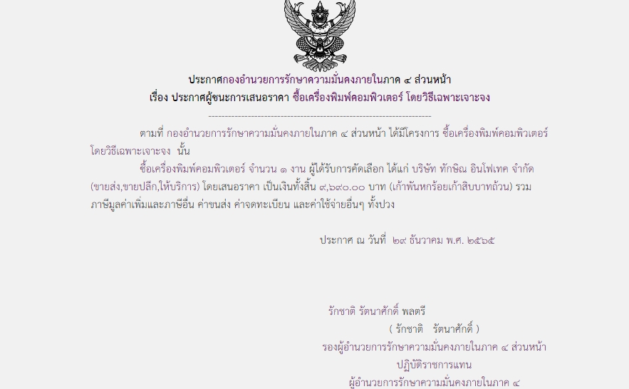 จัดซื้อ จัดจ้างประกาศผู้ชนะการเสนอราคา ประกาศผู้ชนะการเสนอราคา ซื้อเครื่องพิมพ์คอมพิวเตอร์ โดยวิธีเฉพาะเจาะจง January 9, 2023 446 Share Facebook Twitter Google+ Telegram LINE