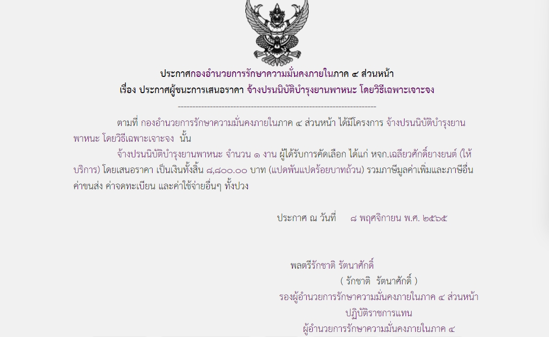 จัดซื้อ จัดจ้างประกาศผู้ชนะการเสนอราคา ประกาศผู้ชนะการเสนอราคา จ้างปรนนิบัติบำรุงยายพาหนะ โดยวิธีเฉพาะเจาะจง January 9, 2023 397 Share Facebook Twitter Google+ Telegram LINE