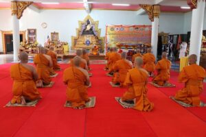 วันนี้ (10 มกราคม 2566) เวลา 08.30 น. ที่วัดมุจลินทวาปีวิหาร พระอารามหลวง ตำบลตุยง อําเภอหนองจิก จังหวัดปัตตานี นายบุญพาศ รักนุ้ย รองเลขาธิการศูนย์อำนวยการบริหารจังหวัดชายแดนภาคใต้ เป็นประธานฝ่ายฆราวาส, พระครูพินิจสมณการ เจ้าคณะจังหวัดปัตตานี เป็นประธานฝ่ายสงฆ์ โดยมี คณะหัวหน้าส่วนราชการ เจ้าหน้าที่ และพุทธศาสนิกชนจังหวัดปัตตานี ร่วมประกอบกิจกรรมบรรพชาอุปสมบทหมู่ 45 รูป ตามโครงการบรรพชาอุปสมบทหมู่ 180 รูป เพื่อถวายพระราชกุศลแด่สมเด็จพระเจ้าลูกเธอ เจ้าฟ้าพัชรกิติยาภา นเรนทิราเทพยวดี กรมหลวงราชสาริณีสิริพัชร มหาวัชรราชธิดา ขอให้พระองค์ทรงหายจากพระอาการประชวรและมีพระพลานามัยแข็งแรงโดยเร็ววัน