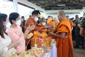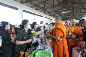 วันนี้ (13 มกราคม 2566) เวลา 07.00 น. ที่ค่ายสิรินธร ตำบลเขาตูม อำเภอยะรัง จังหวัดปัตตานี พลตรี ไพศาล หนูสังข์ รองแม่ทัพภาคที่ 4 / รองผู้อำนวยการรักษาความมั่นคงภายในภาค 4 ส่วนหน้า นำกำลังพล ข้าราชการและครอบครัว ภายในกองอำนวยการรักษาความมั่นคงภายในภาค 4 ส่วนหน้า และกำลังพลกรมทหารราบที่ 152 จัดกิจกรรมตักบาตรพระสงฆ์ที่เข้าร่วมโครงการบรรพชาอุปสมบท 99 รูป จากวัดนิโรธสังฆาราม (วัดหัวควน) ซึ่งออกเดินรับบิณฑบาต ตามโครงการบรรพชาอุปสมบทถวายพระพรชัยมงคลแด่สมเด็จพระเจ้าลูกเธอ เจ้าฟ้าพัชรกิติยาภา นเรนทิราเทพยวดี กรมหลวงราชสาริณีสิริพัชร มหาวัชรราชธิดา ให้ทรงหายจากพระอาการประชวร มีพระพลานามัยแข็งแรงในเร็ววัน