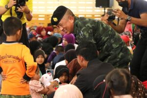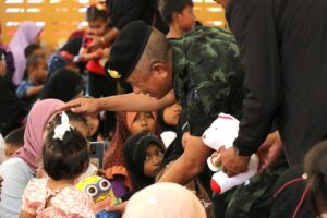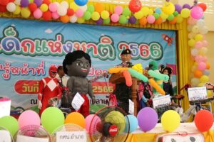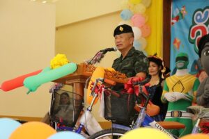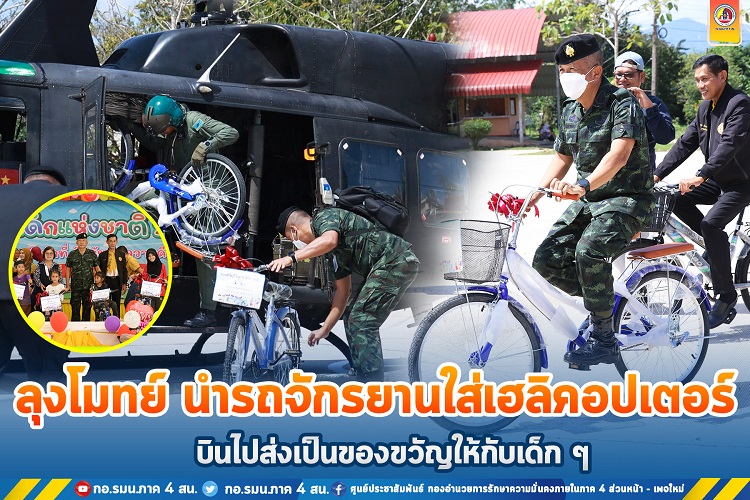 พลตรี ปราโมทย์ พรหมอินทร์ รองแม่ทัพภาคที่ 4 / รองผู้อำนวยการรักษาความมั่นคงภายในภาค 4 ส่วนหน้า หรือลุงโมทย์ กล่าวถึงความตั้งใจในวันนี้ว่า ถึงแม้คุณลุงไม่ได้เป็นซานตาคลอส แต่ก็มีของขวัญมาให้เด็กๆ ซึ่งในวันนี้ตั้งใจนำรถจักรยานใส่เฮลิคอปเตอร์มาให้เพื่ออยากให้เด็ก ๆ ประทับใจและมีความสุข พร้อมทั้งกล่าวให้โอวาทกับเยาวชน มุ่งหวังให้เด็กทุกคนเป็นคนดี รู้หน้าที่ของตนเอง เป็นผู้เสียสละในสังคม รวมทั้ง มีวินัย คือการสร้างความมีระเบียบวินัยของตนเอง โดยเกิดจากการบ่มเพาะกล่อมเกลาจากโรงเรียนและครอบครัว อีกทั้งการใฝ่ความดี ให้ยึดมั่นทั้ง 3 อย่างนี้ จะทำให้เราเติบโตไปเป็นทรัพยากรบุคคลที่มีคุณภาพ พร้อมพัฒนาประเทศชาติต่อไป