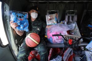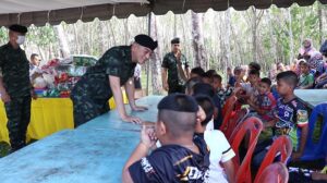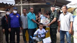 วันนี้ (14 มกราคม 2566) พลโท ศานติ ศกุนตนาค แม่ทัพภาคที่ 4 /ผู้อำนวยการรักษาความมั่นคงภายในภาค 4 ได้นำของขวัญวันเด็ก ลำเลียงใส่ เฮลิคอปเตอร์ แบล็คฮอกเต็มลำ บินลัดฟ้าลงพื้นที่มาส่งความสุขให้แก่เด็ก ๆในพื้นที่ หมู่ที่ 3 บ้านจือแร ตำบลสาวอ อำเภอสือเสาะ จังหวัดนราธิวาส เนื่องในวันเด็กแห่งชาติ ปี 2566 พร้อมทั้งมาเยี่ยมให้กำลังใจครอบครัว นายฮัมดี มะกาเซะ เจ้าหน้าที่อาสารักษาดินแดน (อส.) ชุดคุ้มครองตำบลครีสาคร ที่เสียชีวิตจากเหตุคนร้ายลอบวางระเบิด เมื่อวันที่ 11 มกราคม 2566 ที่ผ่านมา โดยแม่ทัพภาคที่ 4 ยังมอบเครื่องอุปโภค-บริโภค ให้แก่ครอบครัว โดยทราบว่า นายฮัมดี มีลูกชาย 1 คน คือ ด.ช.มูฮัมมัดกาดาฟี มะกาเซะ อายุ 6 ขวบ จึงได้นำจักรยานมามอบให้ เพื่อเป็นขวัญกำลังใจ พร้อมทั้งได้นำของขวัญมาแจกให้เด็ก ๆ ในหมู่บ้าน ใกล้เคียง ที่ไม่ได้ไปร่วมกิจกรรมงานวันเด็กแห่งชาติเนื่องจากอยู่ในพื้นที่ห่างไกล สร้างความสุข สร้างร้อยยิ้มในวันเด็กแห่งชาติ 2566