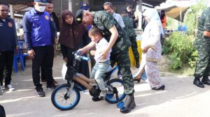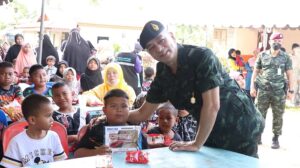 พลโท ศานติ ศกุนตนาค แม่ทัพภาคที่ 4 กล่าวว่า ทุกค่ายทหาร ของกองทัพภาคที่ 4 ได้ร่วมกันจัดให้มีกิจกรรมวันเด็กแห่งชาติ ประจำปี 2566 เพื่อส่งมอบความสุขให้กับเด็กๆ หลังจากห่างหายไปกว่า 2 ปี จากสถานการณ์โควิด 19 โดยผู้บัญชาการทหารบกได้เน้นให้ทุกหน่วยกองทัพบกที่จัดกิจกรรมนอกจากให้ความสนุกสนานแล้วต้องสอดแทรก ความเป็นพลเมืองที่ดี มีคุณธรรม ตลอดจนส่งเสริมการเป็นคนดีของสังคม ให้แก่เด็กๆและเยาวชนได้รับทราบและรับรู้ เพื่อจะเติบโตขึ้นเป็นกำลังสำคัญในการร่วมกันพัฒนาประเทศของเราให้เจริญ รุ่งเรือง สำหรับในพื้นที่จังหวัดชายแดนภาคใต้ ในพื้นที่ห่างไกล ที่ครอบครัวอาจไม่สะดวกในการเดินทางพาลูกหลานมาร่วมกิจกรรมวันเด็กในตัวเมือง ก็จะมีหน่วยทหารในพื้นที่กระจายกันลงไปตามหมู่บ้าน เพื่อนำของขวัญวันเด็กไปส่งให้ถึงมือ เด็ก ๆ ในหมู่บ้าน วันนี้ ตนก็ได้ถือโอกาส ลงมายัง บ้านจือแร ตำบลสาวอ อำเภอรือเสาะ จังหวัดนราธิวาส เพื่อมาเยี่ยมให้กำลังครอบครัว อส. ฮัมดี พร้อมนำจักรยานมามอบให้กับลูกชาย ด้วย เพราะทราบดีว่าวันเด็ก เป็นวันที่เด็กๆทุกคนรอคอย เพื่อให้ครอบครัว ของ อส. ฮัมดี ได้มีกำลังใจ นอกจากนี้ ก็ยังนำของขวัญ ขนมต่างๆ มาแจกให้กับเด็กๆ ที่ยู่ในระแวกใกล้เคียงด้วย เพื่อสร้างความสุข สร้างร้อยยิ้ม ให้ทั้งเด็ก ๆ และผู้ปกครองทุกคน แม้ในยามทุกข์ยาก หรืออยู่ในพื้นที่ห่างไกล แต่เราไม่เคยทิ้งกัน เพราะเราคือ ทหาร ที่มีหน้าที่เป็นที่พึ่งของประชาชนในทุกโอกาส