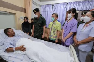 โดย แม่ทัพภาคที่ 4 ได้พูดคุย สอบถามอาการ และเหตุการณ์ที่เกิดขึ้น พร้อมทั้งนำความห่วงใย จาก พลเอก ณรงค์พันธ์ จิตต์แก้วแท้ ผู้บัญชาการทหารบก มายังกำลังพล และครอบครัว ก่อนมอบกระเช้าเยี่ยม และเงินช่วยเหลือเยียวยาเบื้องต้นให้กับกำลังพล กำชับหน่วยต้นสังกัดดูแลเรื่องสิทธิ และสวัสดิการโดยเร็ว ทั้งนี้ ภายหลังเกิดเหตุ แม่ทัพภาคที่ 4 ได้เน้นย้ำให้ทุกพื้นที่เพิ่มความระมัดระวัง ประสานกำลังทุกภาคส่วนรักษาความปลอดภัยในพื้นที่ให้มีประสิทธิภาพมากยิ่งขึ้น เพิ่มมาตรการในการดูแลความปลอดภัยต่อเป้าหมายอ่อนแอ สร้างความเชื่อมั่นให้กับพี่น้องประชาชน ตลอดจนให้หน่วยที่เกี่ยวข้องเร่งรวบรวมวัตถุพยาน รวมทั้งเส้นทางที่คาดว่าคนร้ายจะหลบหนี เพื่อติดตามจับกุมมาดำเนินคดีตามกฎหมายโดยเร็ว