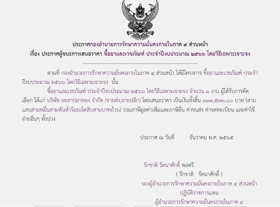 ประกาศผู้ชนะการเสนอราคา ซื้อยาและเวชภัณฑ์ ประจำปีงบประมาณ ๒๕๖๖ โดยวิธีเฉพาะเจาะจง