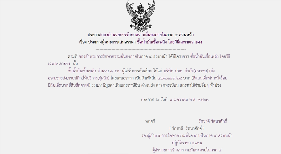 จัดซื้อ จัดจ้างประกาศผู้ชนะการเสนอราคา ประกาศผู้ชนะการเสนอราคา ซื้อน้ำมันเชื้อเพลิง โดยวิธีเฉพาะเจาะจง January 15, 2023 366 Share Facebook Twitter Google+ Telegram LINE