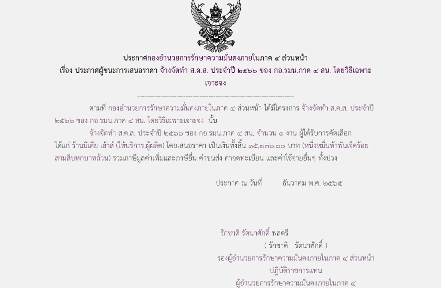 จัดซื้อ จัดจ้างประกาศผู้ชนะการเสนอราคา ประกาศผู้ชนะการเสนอราคา จ้างจัดทำ ส.ค.ส. ประจำปี ๒๕๖๖ ของ กอ.รมน.ภาค ๔ สน. โดยวิธีเฉพาะเจาะจง January 19, 2023 416 Share Facebook Twitter Google+ Telegram LINE