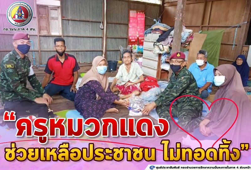 ชุดควบคุมทักษิณสัมพันธ์ ครูหมวกแดง มอบเครื่องอุปโภคบริโภคให้กับ นางพี่อ๊ะ อุไทย ผู้พิการด้านการเคลื่อนไหวแขนขาอ่อนแรงไม่สามารถช่วยเหลือตัวเองได้ ณ บ้านเลขที่ 42/4 ม.6 ต.ลำใหม่ อ.เมือง จ.ยะลา เพื่อให้ความช่วยเหลือประชาชน