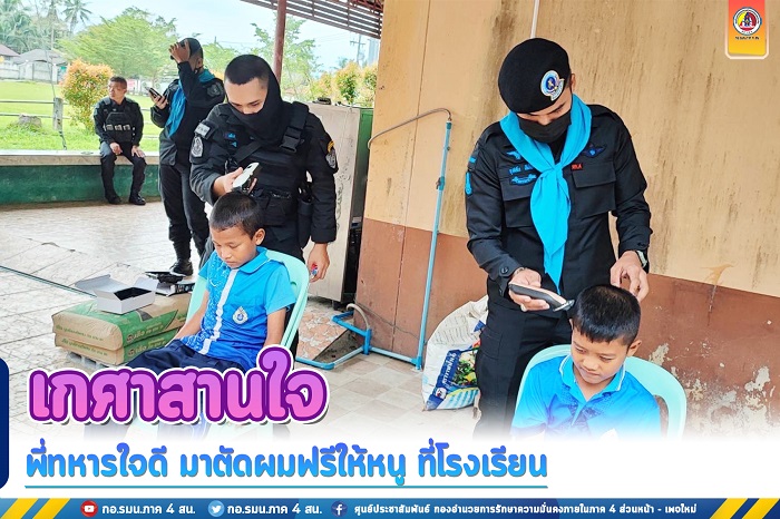 วันที่ 19 มกราคม 2566 หน่วยเฉพาะกิจกรมทหารพรานที่ 48 นำกำลังพลชุดปฏิบัติการเสริมสร้างความเข้าใจ กองร้อยทหารพรานที่ 4803 ออกให้บริการตัดผมฟรีให้กับนักเรียนในโรงเรียนราชประสงค์ บ้านกูแบปูยู หมู่ที่ 8 ตำบลมะรือโบออก อำเภอเจาะไอร้อง จังหวัดนราธิวาส ตามโครงการเกศาสานใจ ซึ่งเป็นนโยบายของ กองอำนวยการรักษาความมั่นคงภายในภาค 4 ส่วนหน้า เพื่อให้เจ้าหน้าที่ทหารในพื้นที่จังหวัดชายแดนภาคใต้ ได้ดำเนินการขับเคลื่อนนโยบาย ดูแลความเป็นอยู่คุณภาพชีวิตให้กับนักเรียน