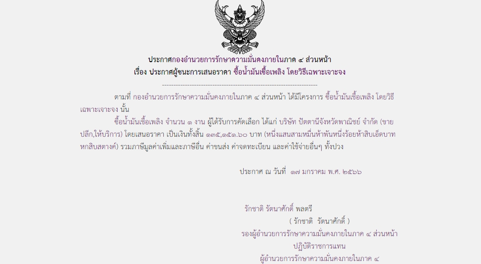 จัดซื้อ จัดจ้างประกาศผู้ชนะการเสนอราคา ประกาศผู้ชนะการเสนอราคา ซื้อน้ำมันเชื้อเพลิง โดยวิธีเฉพาะเจาะจง January 21, 2023 355 Share Facebook Twitter Google+ Telegram LINE