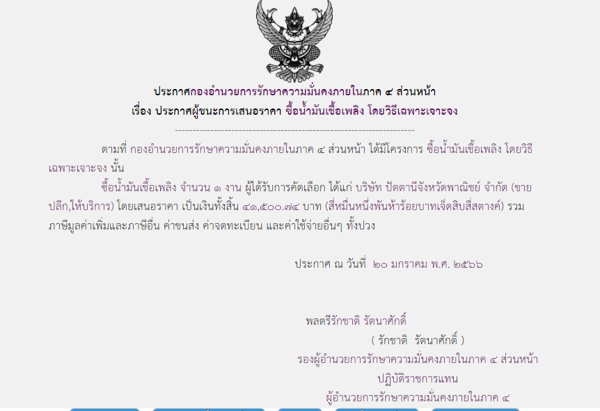 ประกาศผู้ชนะการเสนอราคา ซื้อน้ำมันเชื้อเพลิง โดยวิธีเฉพาะเจาะจง