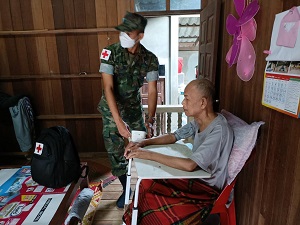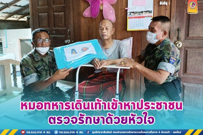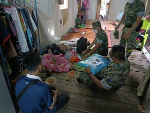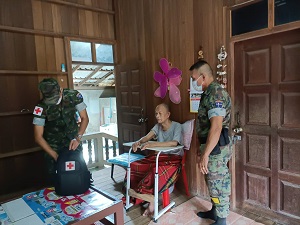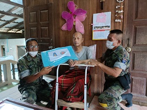 เมื่อวันที่ 22 มกราคม 2566 เวลา 13.30 น. ร้อยปืนเล็กที่ 3 หน่วยเฉพาะกิจนาวิกโยธิน กองทัพเรือ 33 หน่วยเฉพาะกิจนาวิกโยธิน กองทัพเรือ พร้อมด้วย หัวหน้าชุดปฏิบัติการกิจการพลเรือน เจ้าหน้าที่พยาบาล ลงพื้นที่เข้าพบปะเยี่ยมเยียนพูดคุยให้กำลังใจผู้ป่วยติดเตียง และให้การบริการตรวจรักษาสุขภาพในเบื้องต้น ตรวจวัดความดันโลหิต พร้อมทั้งมอบยารักษาโรคและผ้าห่ม จำนวน 2 ราย ประกอบด้วย นายยุนุ เง๊าะ (คอเต็บ) ที่ มัสยิดนูรุตเตาฟิก อาศัยอยู่บ้านเลขที่ 32/1 หมู่ที่ 6 ตำบลบางปอ อำเภอเมือง จังหวัดนราธิวาส และนายรอยะ กาซอ อายุ 72 ปี ป่วยขาอ่อนแรง อาศัยอยู่บ้านเลขที่ 44/1 หมู่ที่ 6 ตำบลบางปอ อำเภอเมือง จังหวัดนราธิวาส ทั้งนี้เพื่อยกระดับคุณภาพชีวิตของประชาชนในพื้นที่ให้ดีขึ้น และทั้ง 2 ครอบครัวรู้สึกดีใจมากที่เจ้าหน้าทหารเข้าไปช่วยเหลือดูแลไม่เคยทอดทิ้งประชาชน