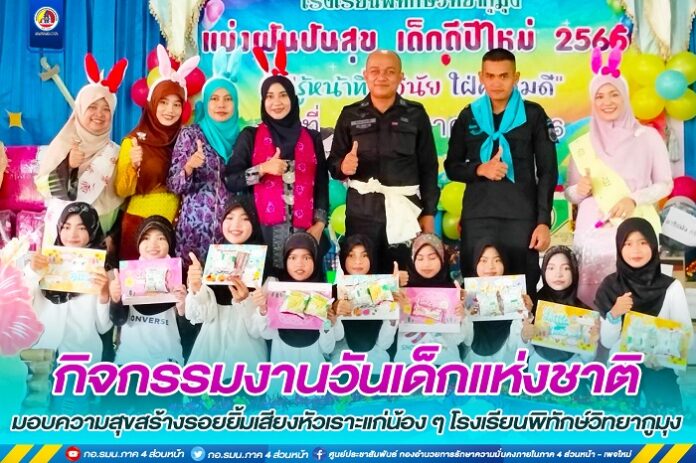 เมื่อวันที่ 25 มกราคม 2566 เวลา 10.00 น. ร้อยโท อำนาจ คงคาชัย ผู้บังคับกองร้อยทหารพรานที่ 4905 ร่วมกับนางสาวนาซีลา สาเหาะ ผู้อำนวยการโรงเรียนพิทักษ์วิทยากูมุง, นายนูเซ็ง ลาเตะ ผู้ใหญ่บ้านกูมุง, ผู้นำหมู่บ้าน, บคลากรทางการศึกษา ร่วมจัดกิจกรรม แบ่งฝันปันสุข เด็กดีปีใหม่ 2566 ให้กับน้องๆนักเรียนโรงเรียนพิทักษ์วิทยากูมุง โดยมี นายอับดุลเลาะ สือแม นายกองค์การบริหารส่วนตำบลช้างเผือก เป็นประธานในกิจกรรมดังกล่าว