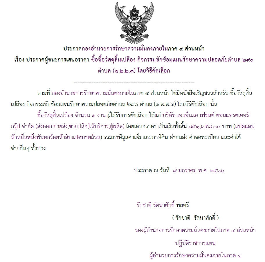 จัดซื้อ จัดจ้างประกาศผู้ชนะการเสนอราคา ประกาศผู้ชนะการเสนอราคา ซื้อซื้อวัสดุสิ้นเปลือง กิจกรรมซักซ้อมแผนรักษาความปลอดภัยตำบล ๒๙๐ ตำบล (๑.๒.๒.๓) โดยวิธีคัดเลือก January 26, 2023 344 Share Facebook Twitter Google+ Telegram LINE