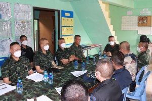 โดย พลตรี ปราโมทย์ พรหมอินทร์ รองแม่ทัพภาคที่ 4 / รองผู้อำนวยการรักษาความมั่นคงภายในภาค 4 ส่วนหน้า กล่าวว่า การตรวจเยี่ยมชุดคุ้มครองตำบลในครั้งนี้ เพื่อรับฟังแนวทางการปฏิบัติงานและนำไปปรับแผนการปฏิบัติงานให้มีความปลอดภัยมากยิ่งขึ้น พร้อมนำข้อห่วงใยจาก พลโท ศานติ ศกุนตนาค แม่ทัพภาคที่ 4 / ผู้อำนวยการรักษาความมั่นคงภายใน 4 และคณะผู้บังคับบัญชา ที่มีต่อการปฏิบัติงานของชุดคุ้มครองตำบลในพื้นที่ โดยในภาพรวมชุดคุ้มครองตำบลมีความเข้มแข็งแต่ยังมีบางจุดที่เป็นจุดล่อแหลม ซึ่งในพื้นที่ยังมีการเคลื่อนไหวของผู้ก่อเหตุความรุนแรง รวมถึงเจ้าหน้าที่ต้องมีความรัดกุมและปฏิบัติตามแผน 3 นอก 4 ใน ส่วนการลาดตระเวนเส้นทางให้หมั่นสังเกต วิเคราะห์ วางแผนการปฏิบัติงานให้รอบคอบ เจ้าหน้าที่ทุกนายต้องมีความตื่นตัวอยู่ตลอดเวลา ไม่ประมาท มีสติ พร้อมทั้งด้านร่างกายและจิตใจ เรียนรู้จากเหตุการณ์ที่เกิดขึ้นมาเป็นบทเรียนนำมาปรับปรุงแก้ไขปรับเปลี่ยนแผนการลาดตระเวนรอบฐานปฏิบัติการ รวมถึงบูรณาการการทำงานกับทุกฝ่าย ร่วมกันเป็นหูเป็นตาสอดส่องและแจ้งเบาะแสข้อมูลข่าวสารในการดูแลพื้นที่ร่วมกัน และเน้นย้ำในเรื่องการเป็นภาวะผู้นำในการปฏิบัติงาน ด้วยการมีความรู้ความเข้าใจ ทั้งการซักซ้อมแผนเผชิญเหตุ และการปรับแผนปฏิบัติงานอยู่ตลอดเวลา เพื่อให้สามารถปฏิบัติงานได้จริง รวมถึงการมีส่วนร่วมกับชุมชนในการรักษาความปลอดภัยพื้นที่ต่อไป