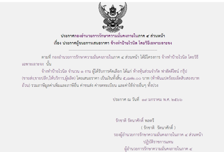 จัดซื้อ จัดจ้างประกาศผู้ชนะการเสนอราคา ประกาศผู้ชนะการเสนอราคา จ้างทำป้ายไวนิล โดยวิธีเฉพาะเจาะจง January 30, 2023 460 Share Facebook Twitter Google+ Telegram LINE