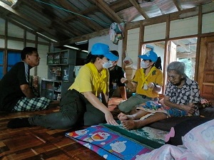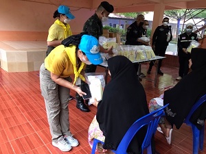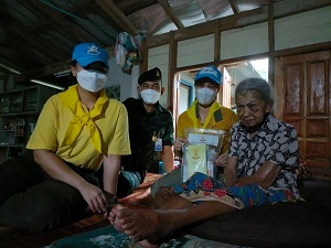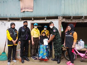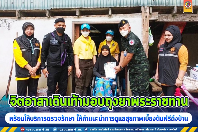 เมื่อวันที่ 30 มกราคม 2566 เวลา 14.00 น. ศูนย์ประสานการแพทย์จังหวัดชายแดนภาคใต้ (ศปกพ.จชต.) ร่วมกับ หน่วยเฉพาะกิจกรมทหารพรานที่ 44 และหน่วยเฉพาะกิจในพื้นที่ นำกำลังพลจิตอาสา ลงพื้นที่ บ้านเจาะกือแย หมู่ที่ 3 ตำบลตะบิ้ง อำเภอสายบุรี จังหวัดปัตตานี โดยมีผู้ใหญ่บ้าน และประชาชนจิตอาสาในพื้นที่ร่วมใจเดินเท้าเข้าสำรวจผู้ป่วยกลุ่มเปราะบาง ผู้ป่วยติดเตียง ผู้พิการในพื้นที่ เพื่อส่งมอบถุงยาพระราชทานแบบส่งตรงถึงบ้าน พร้อมทั้งให้คำปรึกษา, ให้บริการตรวจสุขภาพเบื้องต้น, มอบยาสามัญประจำบ้าน พร้อมสิ่งของอุปโภคบริโภค, สอบถามถึงความเป็นอยู่ รวมทั้งให้กำลังใจและให้คำแนะนำการดูแลสุขภาพแก่ประชาชนในพื้นที่ให้ได้รับการรักษาอย่างถูกวิธี โดยเฉพาะในช่วงฤดูฝนหลายพื้นที่ในจังหวัดชายแดนภาคใต้มีฝนตกอย่างต่อเนื่อง และเกิดน้ำท่วมขัง ซึ่งเป็นแหล่งเพาะพันธุ์ของลูกน้ำยุงลาย และเป็นพาหะของโรคไข้เลือดออก รวมถึงโรคอื่นๆ เช่น โรคไข้ซิกา โรคไข้ปวดข้อยุงลาย