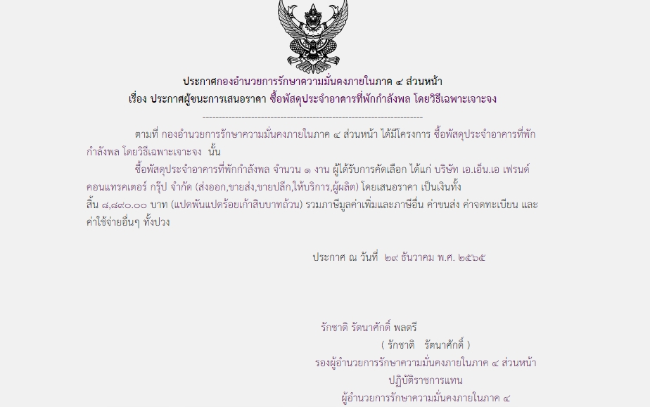 จัดซื้อ จัดจ้างประกาศผู้ชนะการเสนอราคา ประกาศผู้ชนะการเสนอราคา ซื้อพัสดุประจำอาคารที่พักกำลังพล โดยวิธีเฉพาะเจาะจง January 31, 2023 380 Share Facebook Twitter Google+ Telegram LINE