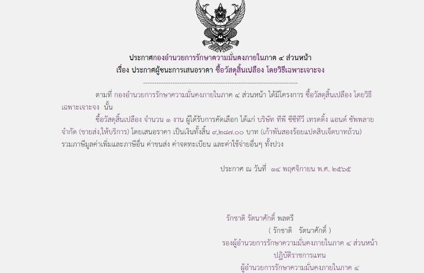 จัดซื้อ จัดจ้างประกาศผู้ชนะการเสนอราคา ประกาศผู้ชนะการเสนอราคา ซื้อวัสดุสิ้นเปลือง โดยวิธีเฉพาะเจาะจง January 31, 2023 472 Share Facebook Twitter Google+ Telegram LINE