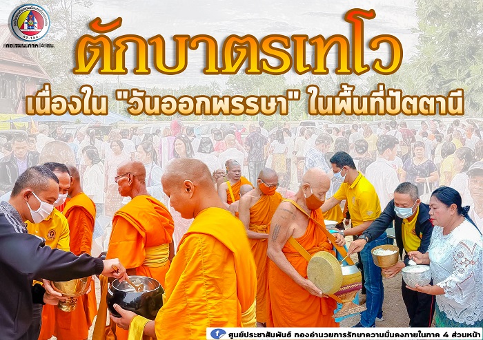 เมื่อวันที่ 3 ตุลาคม 2563 เวลา 06.30 น. ที่ วัดควนใน บ้านพิกุล หมู่ที่ 3 ตำบลควน อำเภอปะนาเระ จังหวัดปัตตานี หน่วยเฉพาะกิจกรมทหารพรานที่ 42 โดย รองผู้บังคับหน่วยเฉพาะกิจกรมทหารพรานที่ 42 พร้อมด้วย หัวหน้าฝ่ายอำนวยการหน่วยฯ กองร้อยทหารพรานในพื้นที่, ชุดปฏิบัติการกิจการพลเรือน กองร้อยทหารพรานที่ 4213 ร่วมกับ ประชาชนไทยพุทธในพื้นที่อำเภอปะนาเระ ร่วมทำบุญตักบาตรเทโว แด่พระภิกษุสงฆ์ เนื่องในเทศกาล”วันออกพรรษา” ประจำปี 2563 เพื่ออนุรักษ์ประเพณีวัฒนธรรม และร่วมทำนุบำรุงพระพุทธศาสนา