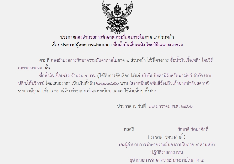 จัดซื้อ จัดจ้างประกาศผู้ชนะการเสนอราคา ประกาศผู้ชนะการเสนอราคา ซื้อน้ำมันเชื้อเพลิง โดยวิธีเฉพาะเจาะจง February 3, 2023 327 Share Facebook Twitter Google+ Telegram LINE