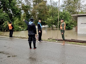 ทั้งนี้ หน่วยเฉพาะกิจกรมทหารพรานที่ 44 และกองพันทหารราบที่ 1 กรมทหารราบที่ 153 จัดเจ้าหน้าที่เฝ้าติดตามสถานการณ์และสำรวจพื้นที่ที่ได้รับความเสียหายอย่างใกล้ชิด อีกทั้งให้มีการประกาศแจ้งเตือนเกี่ยวกับระดับน้ำ รวมถึงเตรียมพร้อมกำลังพลและอุปกรณ์ให้สามารถเข้าพื้นที่ช่วยเหลือประชาชนได้ทันทวงที