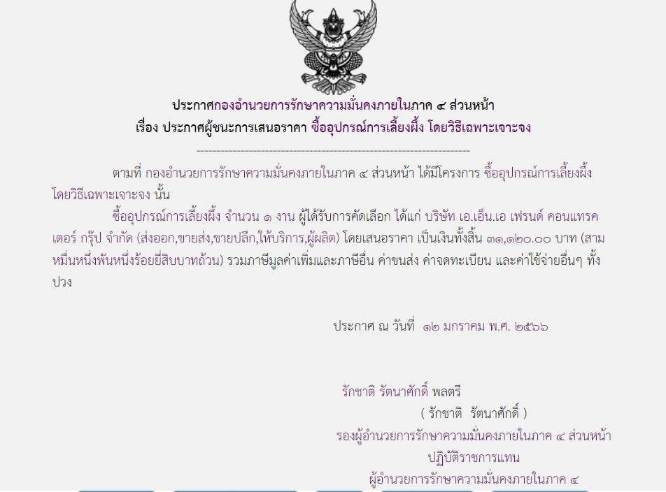 จัดซื้อ จัดจ้างประกาศผู้ชนะการเสนอราคา ประกาศผู้ชนะการเสนอราคา ซื้ออุปกรณ์การเลี้ยงผึ้ง โดยวิธีเฉพาะเจาะจง February 5, 2023 354 Share Facebook Twitter Google+ Telegram LINE