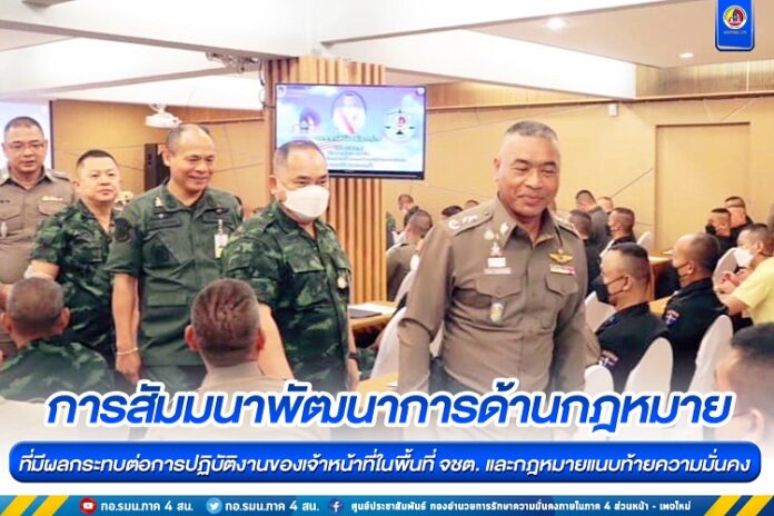 ทั้งนี้ เป็นไปตามดำริของ พลโท ศานติ ศกุนตนาค แม่ทัพภาคที่ 4 / ผู้อำนวยการรักษาความมั่นคงภายในภาค 4 ต้องการให้เจ้าหน้าที่มีความรู้ความเข้าใจเรื่องกฎหมาย โดยมีวัตถุประสงค์เพื่อเสริมสร้างความรู้ความเข้าใจในอำนาจหน้าที่และขั้นตอนการปฏิบัติตามมาตรการ ในกฎหมายความมั่นคง และกฎหมายอื่นๆ ที่ประกาศใช้ในพื้นที่ การสร้างความเข้าใจใน กระบวน การปฏิบัติงาน ที่เป็นไปตามหลักสิทธิมนุษยชนในพื้นที่จังหวัดชายแดนภาคใต้ และเพื่อร่วมกันถกแถลงกฎหมายแนบท้าย พระราชกำหนดการบริหารราชการใน สถานการณ์ฉุกเฉินฯและกฎหมายแนบท้าย พระราชบัญญัติการรักษาความมั่นคงภายในฯ เพื่อพิจารณานำมาใช้เสริมในการปฏิบัติงานให้เกิดประสิทธิภาพมากยิ่งขึ้น ซึ่งจัดขึ้นระหว่างวันที่ 7 – 9 กุมภาพันธ์ 2566