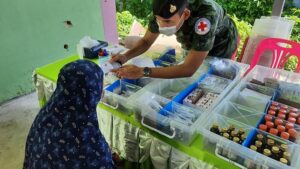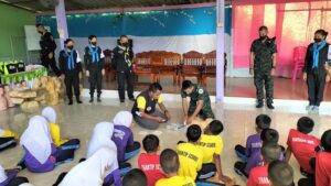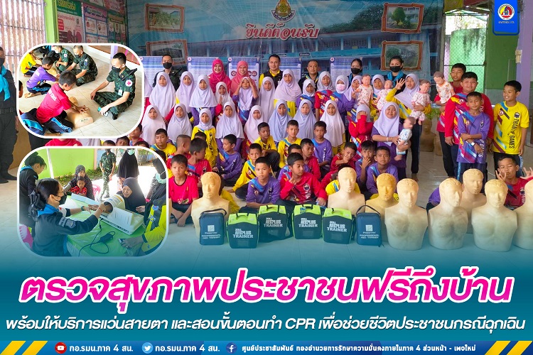 เมื่อวันที่ 7 กุมภาพันธ์ 2566 เวลา 09.00 น. ศูนย์ประสานการแพทย์จังหวัดชายแดนภาคใต้ (ศปกพ.จชต.) ร่วมกับหน่วยเฉพาะกิจกรมทหารพรานที่ 30 จัดเจ้าหน้าที่แพทย์ พยาบาล ลงพื้นที่บ้านบือซู หมู่ที่ 6 ตำบลบันนังสตา อำเภอบันนังสตาจังหวัดยะลา เพื่อให้บริการประชาชนฟรีถึงบ้าน ด้วยการตรวจสุขภาพ พร้อมแจกจ่ายยาตามอาการ และแจกแว่นสายตาแก่ประชาชนในพื้นที่ พร้อมทั้งให้คำแนะนำการดูแลรักษาดวงตา , การใช้ยารักษาโรค และวิธีป้องกันโรคที่มากับฤดูกาลต่างๆ เพื่อสุขภาพของประชาชนได้ปลอดภัยและมีสุขภาพดี โดยมีประชาชนเข้าใช้บริการทั้งสิ้นจำนวน 171 ราย นอกจากนี้เจ้าหน้าที่จากศูนย์ประสานการแพทย์จังหวัดชายแดนภาคใต้ (ศปกพ.จชต.) ร่วมกับหน่วยเฉพาะกิจกรมทหารพรานที่ 30 ยังได้จัดการเรียนการสอน การปฏิบัติช่วยฟื้นคืนชีพขั้นพื้นฐาน โดยการทำ CPR และใช้เครื่องกระตุกหัวใจอัตโนมัติ / เครื่อง AED ) ตามโครงการยุวจิตอาสาสาธารณสุข แก่นักเรียนโรงเรียนบ้านธารทิพย์ ตำบลบันนังสตา อำเภอบันนังสตา จังหวัดยะลา เพื่อให้เยาวชนสามารถให้ความช่วยเหลือชีวิตเพื่อนมนุษย์ด้วยกัน เมื่อเจอสถานการณ์คับขัน เพราะทุกชีวิตมีค่า ต้องปลอดภัย ดังนั้นขั้นตอนการทำ CPR ที่ถูกต้องจึงควรเป็นความรู้ที่น่าจะติดตัวเราทุกคน เพราะอุบัติเหตุเป็นสิ่งที่เกิดขึ้นได้ทุกที่ทุกเวลา และอาจมีบางสถานการณ์ที่เราต้องพบเห็นผู้ประสบเหตุหมดสติ หัวใจหยุดเต้น เช่น คนจมน้ำ ,คนถูกไฟดูด ไฟช็อต ,สูดดมก๊าซพิษ , ควันพิษ ,ช็อกเพราะเสียเลือดมาก หรือผู้ที่ประสบอุบัติเหตุหัวใจหยุดเต้นไปชั่วขณะจากสาเหตุอื่น ๆ ก็ตาม