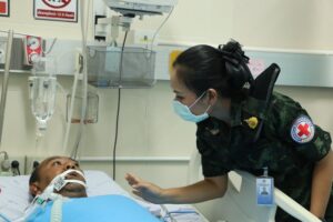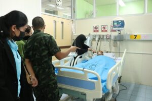 โดยนางมุมีนะห์ เฮงแม ภรรยาของผู้ป่วย ได้กล่าวขอบคุณเจ้าหน้าที่ทีมแพทย์ ศูนย์ประสานการแพทย์จังหวัดชายแดนภาคใต้ และหน่วยงานที่เกี่ยวข้อง ที่ได้ลงพื้นที่โรงพยาบาลนราธิวาสราชนครินทร์ เพื่อเยี่ยมติดตามอาการผู้ป่วยครั้งนี้ พร้อมทั้งชื่นชมบุคลากรทางการแพทย์ทุกคน ที่ทุ่มเท เสียสละ ดูแลผู้ป่วยให้ได้รับการรักษาและช่วยชีวิตอย่างทันท่วงที นอกจากนี้ ผู้แทนเจ้าหน้าที่ทีมแพทย์ ศูนย์ประสานการแพทย์จังหวัดชายแดนภาคใต้ ยังได้มอบถุงยาพระราชทานให้แก่ครอบครัว “เฮงแม” เพื่อเป็นขวัญกำลังใจให้ผู้ป่วยหายเป็นปกติ และกลับมามีสุขภาพที่ดี แข็งแรงในเร็ววัน