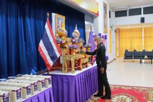 ทั้งนี้ พลตรี เฉลิมพร ขําเขียว ผู้บัญชาการกองพลทหารราบที่ 15 กล่าวว่า กระผม พร้อมด้วยข้าราชการทหาร กําลังพลที่ปฏิบัติงาน และประชาชนที่ประสบภัยพิบัติในพื้นที่ ของกองพลทหารราบที่ 15 จังหวัดนราธิวาส และจังหวัดยะลา ล้วนมีความปลาบปลื้มปิติโสมนัสเป็นล้นพ้น ในโอกาสที่ สมเด็จพระกนิษฐาธิราชเจ้า กรมสมเด็จพระเทพ รัตนราชสุดาฯ สยามบรมราชกุมารี ทรงพระราชทาน ข้าวสาร จํานวน 3,350 กิโลกรัม เพื่อให้ความช่วยเหลือผู้ประสบภัย พิบัติในพื้นที่ ข้าพระพุทธเจ้าทั้งหลายที่ได้มาประชุมพร้อมกันในที่นี้ ล้วน มีจิตโสมนัส และสํานึกในพระมหากรุณาธิคุณเป็นล้นพ้น ที่ใต้ฝ่าละอองพระบาท ทรงมีพระวิริยะอุตสาหะ และพระราชปณิธานอันแน่วแน่ ในการบําเพ็ญพระราชกรณียกิจ ด้วยพระราชหฤทัยเปี่ยมด้วยพระเมตตากรุณา เพื่อบําบัดทุกข์บํารุง สุขแก่อาณาประชาราษฎร์ ซึ่งเป็นที่ประจักษ์อยู่ในดวงใจ ของพสกนิกรชาวไทย ตลอดมา พระองค์ทรงเป็นแบบอย่างของความเป็นครู ทรงเป็นนักการศึกษา และโปรดที่จะศึกษาหาความรู้ต่าง ๆ อย่างจริงจัง ทรงปฏิบัติพระราชกรณียกิจเกี่ยวกับการพัฒนา ด้านการเกษตรและด้านการศึกษาด้วยพระวิริยะอุตสาหะ ทรงปฏิบัติ กิจการอันเป็นประโยชน์แก่ประเทศชาติ และอาณาประชาราษฎร์เป็นอเนกประการ ข้าพระพุทธเจ้าทั้งหลาย ขอพระราชทานถวายพระพร และถวายราชสดุดีเฉลิมพระเกียรติ ขออํานาจผลบุญแห่งปวง ข้าพระพุทธเจ้าทั้งหลาย พร้อมทั้งอานุภาพแห่งคุณพระศรี รัตนตรัย พระสยามเทวาธิราชสิ่งศักดิ์สิทธิ์ทั้งหลาย และพระบารมีแห่งสมเด็จพระบูรพมหากษัตริยาธิราชทุกพระองค์ โปรดอภิบาลให้ใต้ฝ่าละอองพระบาท ทรงมีพระพลานามัย สมบูรณ์ ปราศจากโรคาพาธและอุปัทวันตรายทั้งปวง พระชนมายุยิ่งยืนนาน ทรงพระเกษมสําราญเป็นนิตย์ ขอทุกสิ่งจงสัมฤทธิ์ดังพระราชหฤทัยปรารถนา เป็นมิ่งขวัญของปวงชนชาวไทยสืบไป