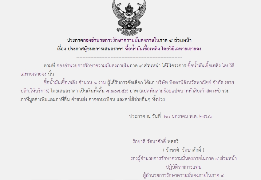 จัดซื้อ จัดจ้างประกาศผู้ชนะการเสนอราคา ประกาศผู้ชนะการเสนอราคา ซื้อน้ำมันเชื้อเพลิง โดยวิธีเฉพาะเจาะจง February 9, 2023 410 Share Facebook Twitter Google+ Telegram LINE
