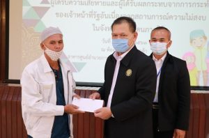 วันนี้ (6 ตุลาคม 2563) ที่ห้องประชุมน้อมเกล้า ศูนย์อำนวยการบริหารจังหวัดชายแดนภาคใต้ (ศอ.บต.) มอบเงินช่วยเหลือเยียวยาเพิ่มเติมแก่ครอบครัว นายฮาพีซี มะดาโอะ นายบูดีมัน มะลี และนายมะนาซี สะมะแอ จากกรณีเจ้าหน้าที่ยิงทั้ง 3 คนเสียชีวิตบนเขาตะเว อ.เจาะไอร้อง จ.นราธิวาส เนื่องจากสำคัญผิดว่าเป็นผู้ก่อเหตุรุนแรง เมื่อวันที่ 16 ธันวาคม 2562 โดย ศอ.บต. ได้ลงพื้นที่เยี่ยมเยียน ให้กำลังใจ พร้อมมอบเงินช่วยเหลือเยียวยาตามระเบียบคณะกรรมการยุทธศาสตร์ด้านการพัฒนาจังหวัดชายแดนภาคใต้ ว่าด้วยการให้ความช่วยเหลือเยียวยาผู้ได้รับความเสียหายและผู้ได้รับผลกระทบจากการกระทำของเจ้าหน้าที่รัฐ สืบเนื่องจากเหตุการณ์ความไม่สงบในจังหวัดชายแดนภาคใต้ พ.ศ. 2555 (ระเบียบ กพต.) และอำนาจเลขาธิการ ศอ.บต. แล้ว รายละ 500,000 บาท นอกจากนี้ ศอ.บต. ได้เสนอ คณะกรรมการ กพต.ให้พิจารณาเยียวยาเพิ่มเติมครอบครัวละ 1 ล้านบาท และได้อนุมัติเมื่อวันที่ 16 ก.ค. 2563 โดยวันนี้พลเรือตรีสมเกียรติ ผลประยูร เลขาธิการ ศอ.บต. ได้มอบเงินช่วยเหลือเยียวยาเพิ่มเติมดังกล่าวภายใต้กิจกรรมอบรมให้ความรู้ และมอบเงินช่วยเหลือเยียวยาผู้ได้รับความเสียหายและผู้ได้รับผลกระทบจากการกระทำของเจ้าหน้าที่รัฐ ฯ ร่วมกับผู้ได้รับผลกระทบรายอื่น จำนวน 41 ราย