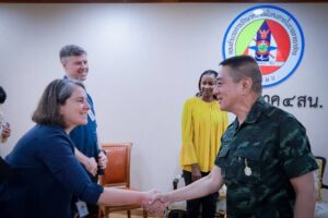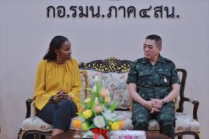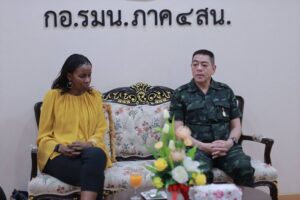 วันนี้ (10 กุมภาพันธ์ 2566) เวลา 09.30 น. ที่ ห้องรับรอง กองอำนวยการรักษาความมั่นคงภายในภาค 4 ส่วนหน้า ค่ายสิรินธร ตำบลเขาตูม อำเภอยะรัง จังหวัดปัตตานี พลโท ศานติ ศกุนตนาค แม่ทัพภาคที่ 4 / ผู้อำนวยการรักษาความมั่นคงภายในภาค 4 พร้อมด้วย พลตรี ไพศาล หนูสังข์ รองแม่ทัพภาคที่ 4 / รองผู้อำนวยการรักษาความมั่นคงภายในภาค 4 ส่วนหน้า , พลตรี ปราโมทย์ พรหมอินทร์ รองแม่ทัพภาคที่ 4 / รองผู้อำนวยการรักษาความมั่นคงภายในภาค 4 ส่วนหน้า และคณะฯ ให้การต้อนรับ นาง สุขคีนา เคน ผู้อำนวยการกลุ่มงานด้านความเปราะบาง ความขัดแย้งและความรุนแรง ประจำสำนักงานธนาคารโลก ณ กรุงวอชิงตัน และคณะฯ เข้าพบเพื่อหารือเกี่ยวกับแนวทางการส่งเสริมความร่วมมือด้านสันติภาพ และการพัฒนาระหว่างกลุ่มธนาคารโลกกับส่วนราชการไทย