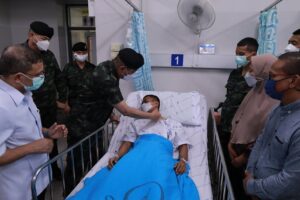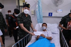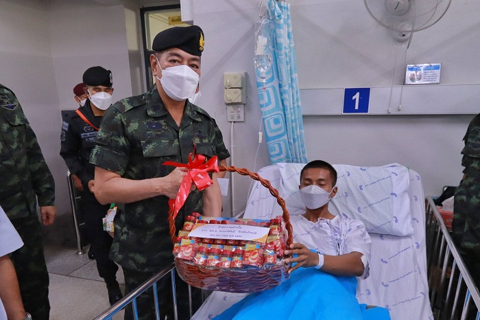 โดย แม่ทัพภาคที่ 4 ได้สอบถามอาการ และเหตุการณ์ที่เกิดขึ้น มอบกระเช้าเยี่ยมผู้ป่วย พร้อมเงินช่วยเหลือเป็นขวัญกำลังใจ ทั้งนำความห่วงใยจาก พลเอก ณรงค์พันธ์ จิตต์แก้วแท้ ผู้บัญชาการทหารบกที่ฝากยังเจ้าหน้าที่ที่ได้รับบาด และครอบครัว เน้นย้ำหน่วยต้นสังกัดเรื่องสวัสดิการ ด้านการรักษาพยาบาลอย่างดีที่สุด กำชับทุกฝ่ายเร่งสืบสวนรวบรวมหลักฐาน ตรวจสอบเส้นทางที่คาดว่าคนร้ายใช้หลบหนี เพื่อนำมาเป็นข้อมูลในการติดตามตัวผู้ก่อเหตุมาดำเนินคดีตามกฎหมายต่อไป