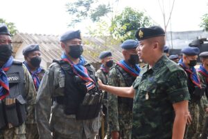 จากนั้นรองแม่ทัพภาคที่ 4 และคณะ ลงพื้นที่ตรวจเยี่ยม ชุดคุ้มครองตำบลสาวอ อำเภอรือเสาะ จังหวัดนราธิวาส พร้อมทั้งรับฟังบรรยายสรุปจากเหตุการณ์ เมื่อวันที่ 9 กุมภาพันธ์ 2566 ที่ผ่านมา ซึ่งเหตุเกิดขณะที่ ชุดคุ้มครองตำบลสาวอ จัดกำลังพล จำนวน 1 ชุดปฏิบัติการ ออกปฏิบัติภารกิจทำการลาดตระเวน รักษาความปลอดภัยเส้นทางรถไฟด้วยการเดินเท้า และหลังจากเสร็จสิ้นภารกิจ ชุดปฏิบัติการดังกล่าว ได้เดินทางกลับฐานปฏิบัติการ เมื่อมาถึงบริเวณที่เกิดเหตุ คนร้ายไม่ทราบจำนวน ได้จุดชนวนระเบิด แรงระเบิดทำให้เจ้าหน้าที่ได้รับบาดเจ็บ จำนวน 8 นาย