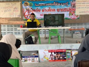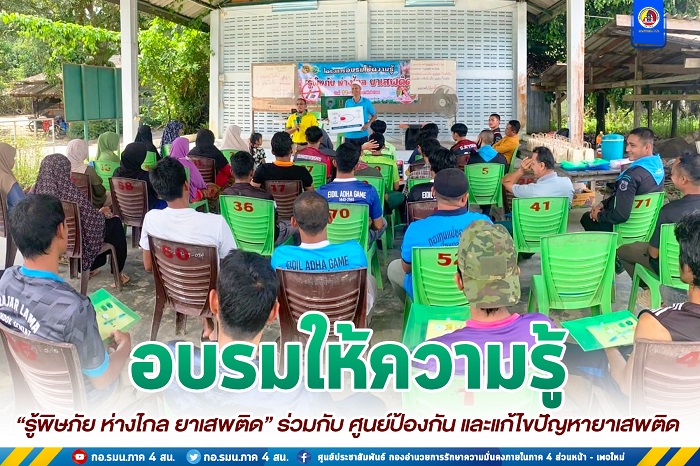 สำหรับโครงการอบรมให้ความรู้ “รู้พิษภัย ห่างไกล ยาเสพติด” เป็นการอบรมให้ความรู้เกี่ยวกับเรื่องโทษของยาเสพติดให้กับประชาชนในพื้นที่ โดยมีกลุ่มเป้าหมายเข้ารับการอบรม จำนวน 80 คน เพื่อให้ประชาชนในหมู่บ้านมีความรู้ความเข้าใจเกี่ยวกับโทษของยาเสพติด เสริมสร้างภูมิคุ้มกัน โดยใช้คุณธรรม จริยธรรมตามหลักศาสนาแก่ประชาชน และเพื่อเสริมสร้างความร่วมมือระหว่างหน่วยงานราชการกับประชาชนในพื้นที่หมู่บ้าน ในการต่อต้านยาเสพติด
