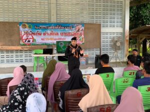 เมื่อวันที่ 11 กุมภาพันธ์ 2566 เวลา 10.00 น. ที่ ศาลาอเนกประสงค์บ้านลูโบ๊ะลาเซาะ หมู่ที่ 1 ตำบลร่มไทร อำเภอสุคิริน จังหวัดนราธิวาส ร้อยโท อัครายุทธ สีดาโคตร ผู้บังคับกองร้อยทหารพรานที่ 4908 นำกำลังพลชุดปฏิบัติการกิจการพลเรือน ร่วมกับ หัวหน้าส่วนราชการ, ผู้นำหมู่บ้าน, ผู้นำศาสนาในพื้นที่บ้านลูโบ๊ะลาเซาะ ร่วมโครงการอบรมให้ความรู้ “รู้พิษภัย ห่างไกล ยาเสพติด” ร่วมกับ ศูนย์ป้องกันและแก้ไขปัญหายาเสพติด กองอำนวยการรักษาความมั่นคงภายในภาค 4 ส่วนหน้า (ศปส.กอ.รมน.ภาค 4 ส่วนหน้า) และร่วมเป็นวิทยากร มาให้ความรู้เกี่ยวกับเรื่องโทษของยาเสพติดให้กับประชาชนในพื้นที่ โดยมี นายวีรา บินเจ๊ะโซ๊ะ ผู้ใหญ่บ้านลูโบ๊ะลาเซาะ หมู่ที่ 1 เป็นประธานเปิดโครงการดังกล่าว
