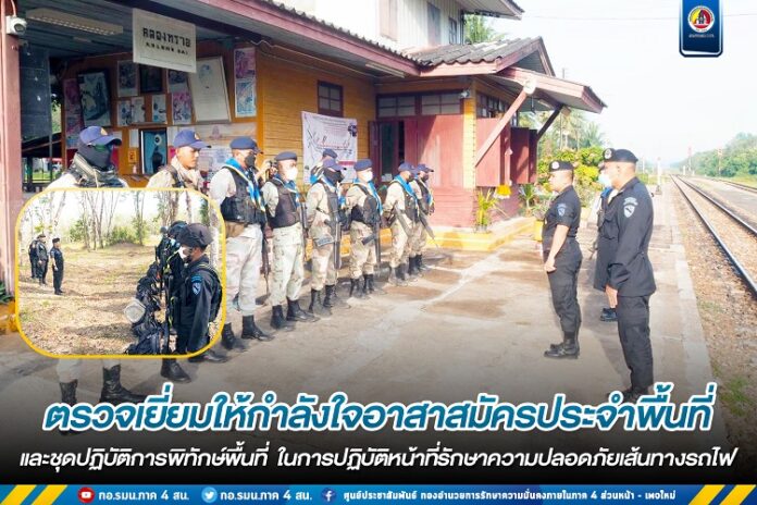 เมื่อวันที่ 12 กุมภาพันธ์ 2566 เวลา 08.00 น. พันเอก ปรเมธ ศานุพงศ์ ผู้บังคับหน่วยเฉพาะกิจกรมทหารพรานที่ 43 พร้อมคณะ ลงพื้นที่ตรวจเยี่ยมการปฏิบัติงาน และให้กำลังใจอาสาสมัครประจำพื้นที่ และชุดปฏิบัติการพิทักษ์พื้นที่ ที่ปฏิบัติหน้าที่รักษาความปลอดภัยเส้นทางรถไฟ ตลอดจนได้สอบถามปัญหาข้อขัดข้องในการปฏิบัติงาน ทั้งนี้ เพื่อกำกับดูแลและเน้นย้ำการปฏิบัติให้เป็นไปตามนโยบายและสั่งการของ แม่ทัพภาคที่ 4 / ผู้อำนวยการรักษาความมั่นคงภายในภาค 4 รวมทั้งปฏิบัติตามมาตรการรักษาความปลอดภัยเส้นทางรถไฟ เพื่อสร้างความเชื่อมั่นและความปลอดภัยให้กับประชาชน