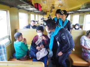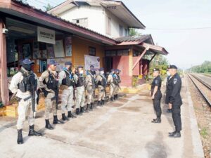 ทั้งนี้ ผู้บังคับหน่วยเฉพาะกิจกรมทหารพรานที่ 43 พร้อมคณะ ได้ร่วมเดินทางติดตามการปฏิบัติงานของ ชุดปฏิบัติการพิทักษ์พื้นที่ ในการปฏิบัติหน้าที่รักษาความปลอดภัยเส้นทางรถไฟในเขตพื้นที่รับผิดชอบของหน่วย โดยเดินทางร่วมขบวนรถไฟที่ 448 (สุไหงโก-ลก – สุราษฎร์ธานี) เริ่มจากสถานีรถไฟคลองทราย ตำบลแม่ลาน อำเภอแม่ลาน จังหวัดปัตตานี ไปจนถึง สถานีรถไฟตาแปด ตำบลปากบาง อำเภอเทพา จังหวัดสงขลา รวมทั้งได้พบปะ เยี่ยมเยียน และสนับสนุนน้ำดื่มให้กับประชาชนผู้โดยสารในระหว่างการเดินทางอีกด้วย