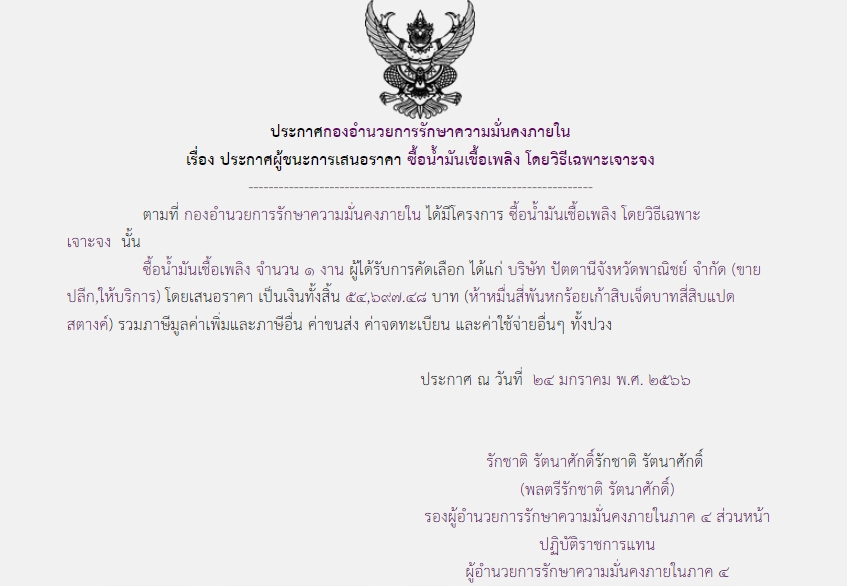 จัดซื้อ จัดจ้างประกาศผู้ชนะการเสนอราคา ประกาศผู้ชนะการเสนอราคา ซื้อน้ำมันเชื้อเพลิง โดยวิธีเฉพาะเจาะจง February 13, 2023 368 Share Facebook Twitter Google+ Telegram LINE