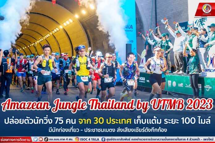 วันนี้ (17 กุมภาพันธ์ 2566) เวลา 10.00 น. ณ จุดปล่อยตัว บริเวณ อุโมงค์ปิยะมิตร อำเภอเบตง จังหวัดยะลา Amazean Jungle Thailand by UTMB 2023 ปล่อยตัวนักวิ่ง ระยะ 100 mile (160 กิโลเมตร) วิ่งชมเมืองเบตง จังหวัดยะลา 18 จุดสำคัญ ลัดเลาะผ่านผืนป่าฮาลาบาลา ผ่านจุดชมวิวทะเลหมอกอัยเยอร์เวง และจุดชมวิวทะเลหมอกฆูนุงสิลิปัต ซึ่งชมหมอก อ.เบตง ได้ 360 องศา และมีกำหนดถึงเส้นชัยในวันที่ 19 กุมภาพันธ์ 2566 โดยนักกีฬาที่เข้าร่วมวิ่งในระยะ 100 ไมล์ มีจำนวน 75 คน เป็นนักวิ่งมืออาชีพ ที่ต้องวิ่งเก็บสะสมคะแนนในสนามวิ่งเทรลระดับ world series 25 ประเทศทั่วโลก โดยเก็บคะแนนสะสม เพื่อไปวิ่ง ณ เมือง chamonix (ชาโมนี่) ซึ่งเป็นสนามเริ่มต้นของการวิ่งเทรลของ UTMB