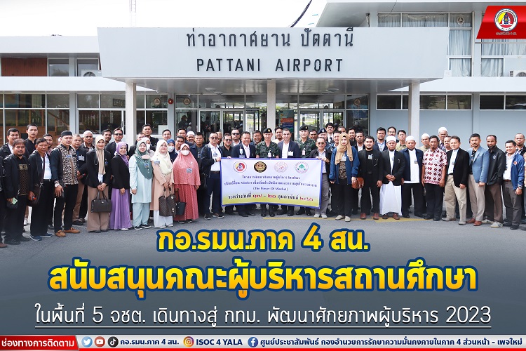 สำหรับกิจกรรมดังกล่าว สมาคมสมาพันธ์โรงเรียนเอกชนภาคใต้ จัดขึ้นโดยมี กองอำนวยการรักษาความมั่นคงภายในภาค 4 ส่วนหน้า, ศูนย์อำนวยการบริหารจังหวัดชายแดนภาคใต้, มูลนิธิเพื่อการพัฒนาคุณภาพชีวิตด้วยการศึกษา (SWS) ช่วยสนับสนุน โดยการนำผู้บริหารสถานศึกษาในพื้นที่ 5 จังหวัดชายแดนภาคใต้ และจังหวัดพัทลุง กว่า 80 คน เดินทางโดยเครื่องบินลำเลียง C-130 ไปยังสนามบินดอนเมือง เพื่อเข้าร่วมกิจกรรมการแลกเปลี่ยน เรียนรู้ทิศทางการบริหารสถานศึกษายุคใหม่, การพัฒนา Growth Mindset เพิ่มประสิทธิภาพการจัดการศึกษา, การพัฒนาภาวะความเป็นผู้นำกับการเติบโตขององค์กร ในระหว่างวันที่ 17 – 20 กุมภาพันธ์ 2566 เพื่อ พัฒนาการศึกษา สร้างความเปลี่ยนแปลงที่มั่นคงในพื้นที่ สู่ความสันติสุขได้ต่อไปในอนาคต