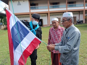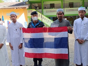 นอกจากนี้ เจ้าหน้าที่ทหารพรานยังได้นำธงชาติผืนใหม่ไปเปลี่ยนทดแทนผืนเก่าที่ชำรุดให้กับทางโรงเรียน เพื่อเป็นการส่งเสริมการรักชาติ ศาสนา และเทิดทูนสถาบันพระมหากษัตริย์ พร้อมสอดแทรกประวัติความเป็นมาของธงชาติไทย เพราะธงไตรรงค์ หรือธงชาติไทย ถือเป็นสัญลักษณ์อันสูงสุดของชาติ เป็นสิ่งเตือนใจให้อนุชนรุ่นหลัง ได้รำลึกถึงการเสียสละเลือดเนื้อของบรรพบุรุษ เพื่อรักษาไว้ซึ่งแผ่นดิน และร้อยดวงใจคนทั้งชาติให้เป็นหนึ่ง หล่อหลอมความรักสามัคคีสร้างเสริมความภูมิใจในความเป็นชาติ ก่อเกิดเป็นพลังยิ่งใหญ่ในการพัฒนาชาติไทย