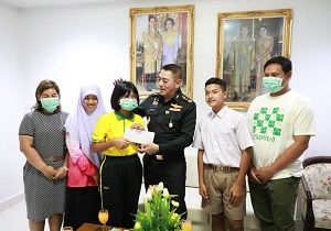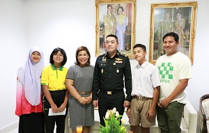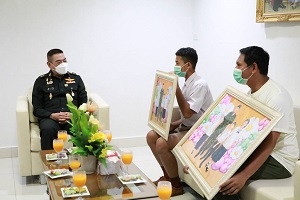 วันนี้ (21 กุมภาพันธ์ 2566) เวลา 09.30 น. ที่ ห้องรับรองรวงผึ้ง กองอำนวยการรักษาความมั่นคงภายในภาค 4 ส่วนหน้า ค่ายสิรินธร ตำบลเขาตูม อำเภอยะรัง จังหวัดปัตตานี พลโท ศานติ ศกุลตนาค แม่ทัพภาคที่ 4 / ผู้อำนวยการรักษาความมั่นคงภายในภาค 4 รับมอบของที่ระลึกจากคณะกลุ่มลูกเหรียง สืบเนื่องจากในห้วงที่ผ่านมา แม่ทัพภาคที่ 4 ได้เดินทางเป็นประธานมอบทุนการศึกษากลุ่มลูกเหรียง เพื่อเป็นการตอบแทนเยาวชนกลุ่มลูกเหรียงได้วาดภาพ เป็นภาพที่ท่านแม่ทัพเดินจูงมือเด็ก ๆ เข้าบ้านลูกเหรียง ซึ่งเป็นความประทับใจและนำมามามอบเพื่อเป็นการตอบแทน บรรยากาศเป็นไปอย่างอบอุ่น