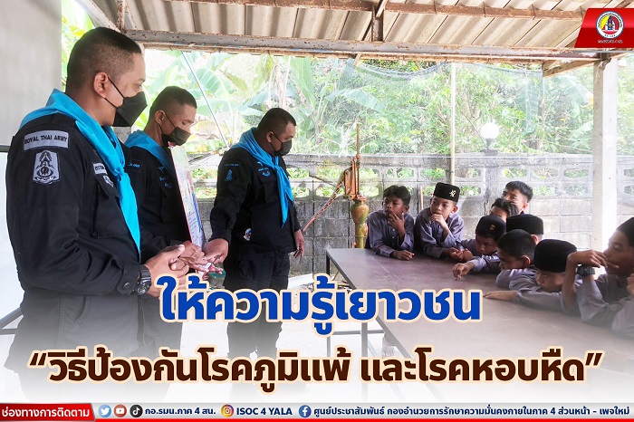 ทั้งนี้ เจ้าหน้าที่ทหารพรานยังได้ประชาสัมพันธ์สร้างความรู้ความเข้าใจ โรคภูมิแพ้ และโรคหอบหืด และวิธีการป้องกันรักษาโรค ให้กับเด็กนักเรียนได้เรียนรู้ พร้อมทั้งได้จัดหาขนมมอบให้น้องๆ สร้างรอยยิ้มและเสียงหัวเราะ และมีความสุขในการเรียนมากขึ้น โดยมีคณะครูและนักเรียน ให้การต้อนรับเป็นอย่างดี