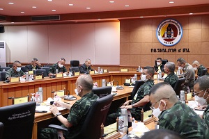 จากนั้น คณะชุดตรวจสำนักจเรกองอำนวยการรักษาความมั่นคงภายในราชอาณาจักร รับฟังคำบรรยายสรุป ข้อชี้แจงการปฏิบัติมาตรการควบคุมการใช้งาน ยุทโธปกรณ์ สอบถามปัญหาอุปสรรคข้อเสนอแนะ และตอบข้อซักถามเกี่ยวกับการปฏิบัติราชการของกองอำนวยการรักษาความมั่นคงภายในภาค 4 ส่วนหน้า